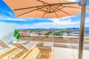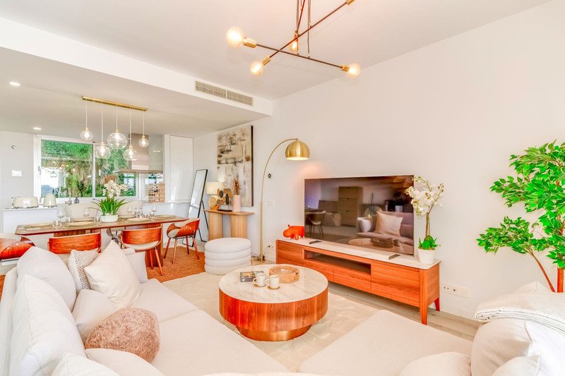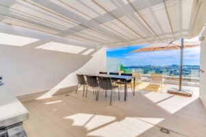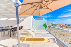 New modern townhouse FOR SALE on the New Golden Mile, Cancelada The complex: * A collection of 36 fashionable, newly build townhouses * Communal pool * Beautiful landscaped gardens * All houses will have access to the adjacent Santa Vista Clubhouse which benefits from a indoor heated pool, gym, spa, coffee shop and store The townhouse * Beautiful clean modern lines * Panoramic views over the countryside towards the sea * 3 bedrooms and 2.5 bathrooms * Distribution over 2 floors + solarium * Spacious open plan living area with lots of natural light flooding into the home * Awesome rooftop terrace * Fully fitted modern kitchen * Large floor to ceiling windows * Air conditioning for cooling and heating * Fitted wardrobes Excellent price / quality ratio fr a new spacious modern home in an up and coming area! Must be seen to be fully appreciated!